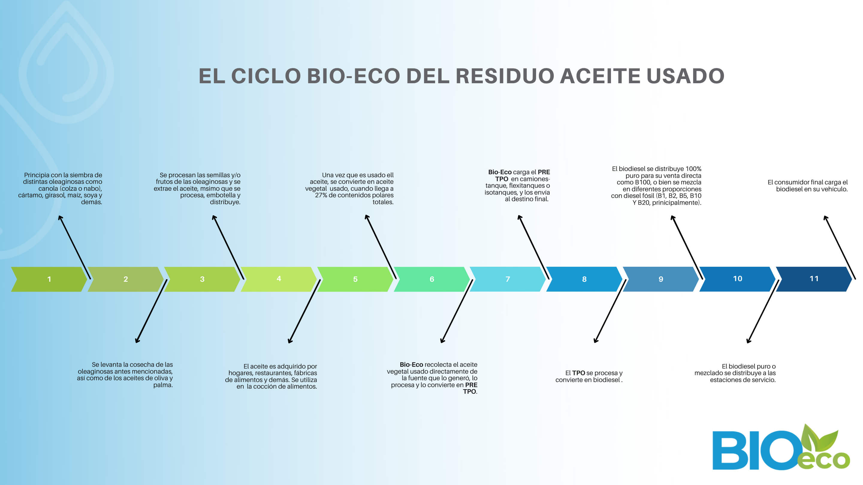 Para contribuir a la solución de esta problemática ambiental, BIO-ECO toma acción para hacer un cambio positivo, transformándolo en un nuevo recurso (biocombustible). Cuando gestionas tus aceites usados, estás permitiendo el inicio de la cadena de su reciclaje y haces posible que, NO contaminen y se reduzcan las emisiones de CO2 mediante su aprovechamiento como materia prima de la producción de biocombustibles.